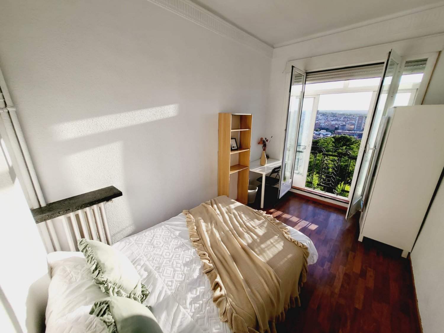 Increible habitación disponible! Si no estás en Madrid te ofrecemos servicio de videollamada para que la veas en tiempo real. El piso está ubicado junto al Hospital y Centro Cultural Sanchinarro, metro Blasco Ibañez. Habitación con cama sencilla, armario, escritorio y ventana exterior. El piso compartido en Madrid está totalmente amueblado, cuenta con cocina equipada, sala de estar-living, tv, padell y piscina. Gastos NO incluidos en el precio hasta un limite de hasta un limite de consumo razonable euros por piso, son 40€ por agua, energía, gas y WiFi.
