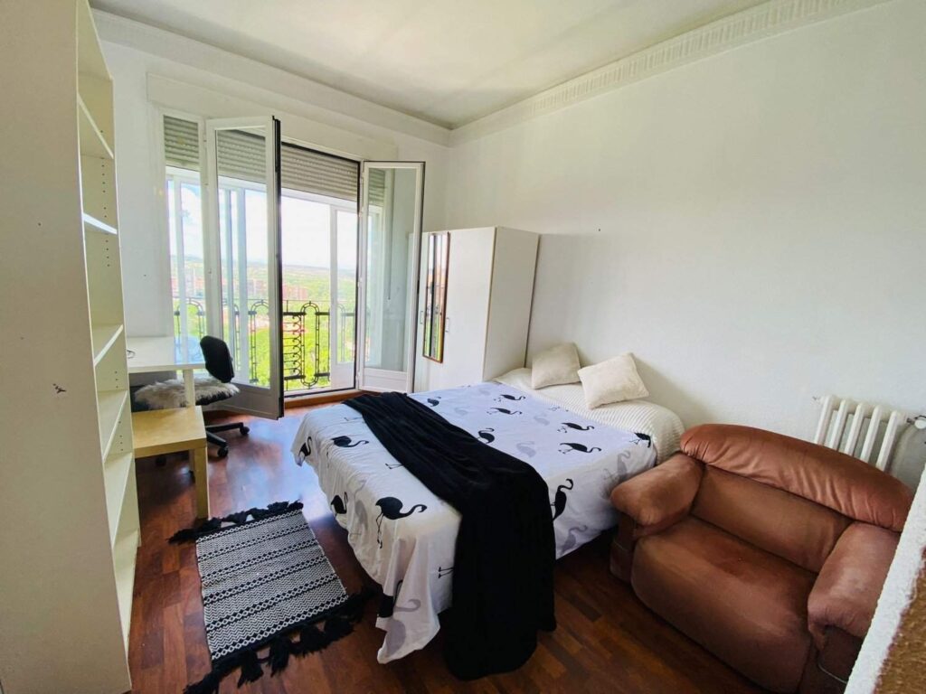 Increible habitación disponible! Si no estás en Madrid te ofrecemos servicio de videollamada para que la veas en tiempo real. El piso está ubicado junto al Hospital y Centro Cultural Sanchinarro, metro Blasco Ibañez. Habitación con cama sencilla, armario, escritorio y ventana exterior. El piso compartido en Madrid está totalmente amueblado, cuenta con cocina equipada, sala de estar-living, tv, padell y piscina. Gastos NO incluidos en el precio hasta un limite de hasta un limite de consumo razonable euros por piso, son 40€ por agua, energía, gas y WiFi.